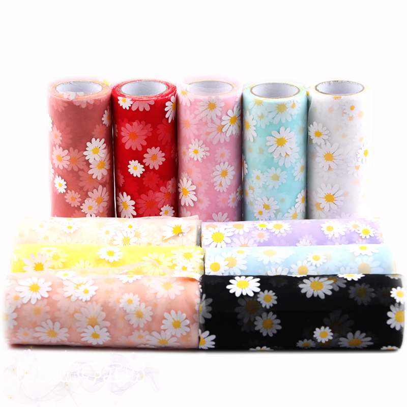 Small daisy dense soft yarn children's tutu skirt diy handmade skirt yarn material mesh fabric tutu skirt hair accessories yarn roll