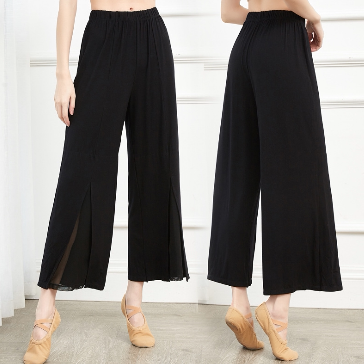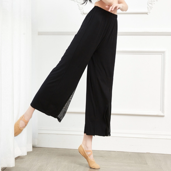 Spring Summer Modale Dance Pants Mesh Yarn Splicing Broadlegged Pants Classical China Modern Dance Practice Long Pants Children