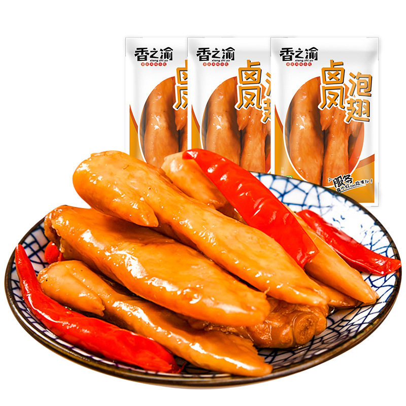 Chongqing Xiangzhi Yu stewed spicy chicken wings tip 500g small package cooked food spicy stewed chicken wings medium stewed small snacks