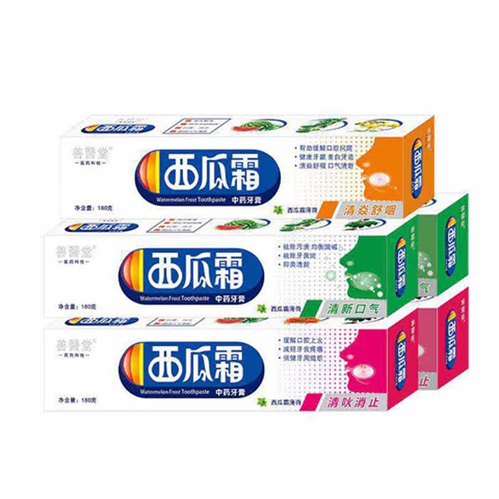 (3 sticks) Watermelon Cream Chinese Herbal Toothpaste Fresh Breath, Clear Breath, Watermelon Cream, Mint Flavor 180g