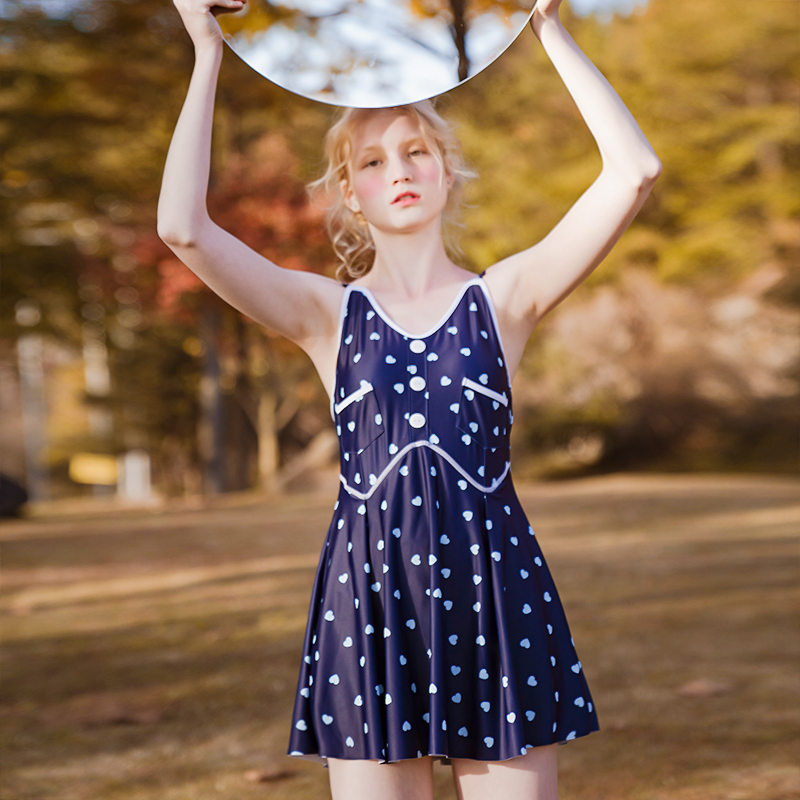 Li Xiaojiao Even with a conservative student swimsuit women's flat angle skirt-style cover-less sleeveless frescoed spa swimsuit
