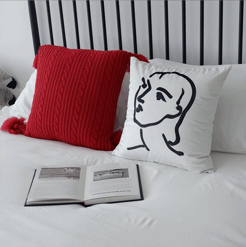 Wild behemoth style Pillow Mattis Morocco leaning on the bag black and white leaning against the pillow red cushions sofa backrest