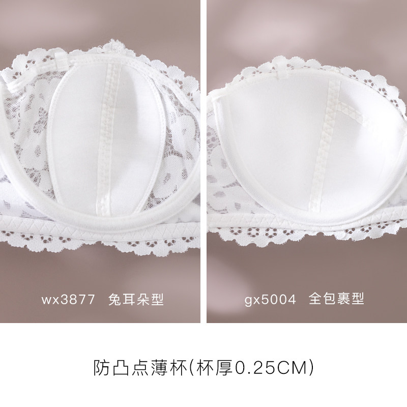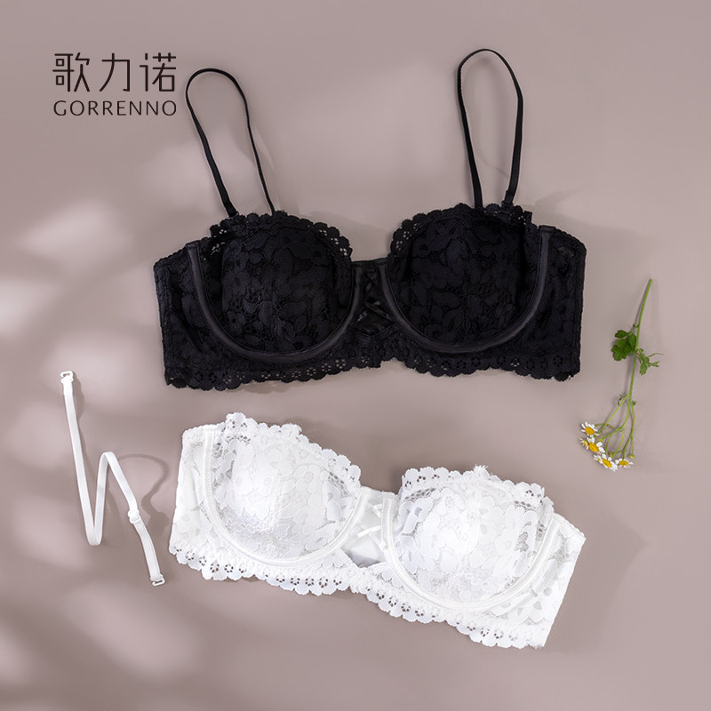 Gorino lace bra summer ultra thin white pure desire half cup large chest small strapless gathered underwear women