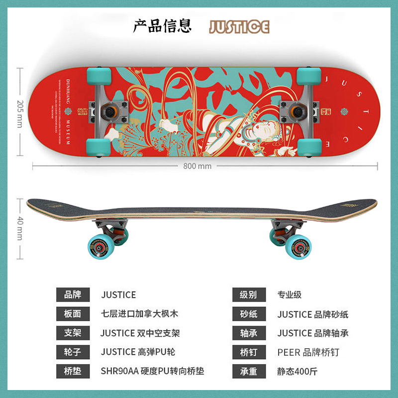 Boiling point Justice Dunhuang skateboard Fei-ski series of male and female students double-warp Wang Yibo brush wheel professional board