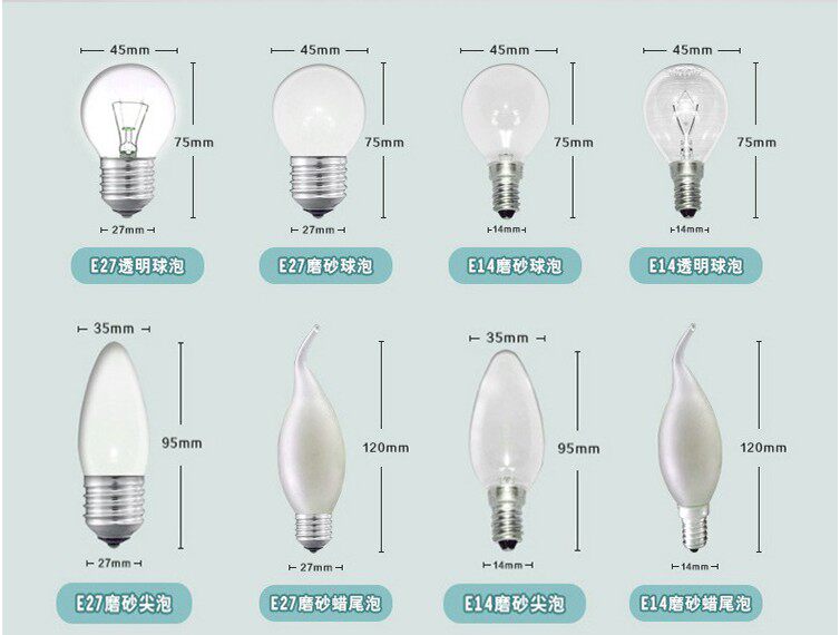 E27 Transparent Bulb (10 loaded) E27 frosted bulb (10 loaded) E14 transparent spikes (10 fit) E14 frosted spikes (10 fit) E27 frosted spikes (