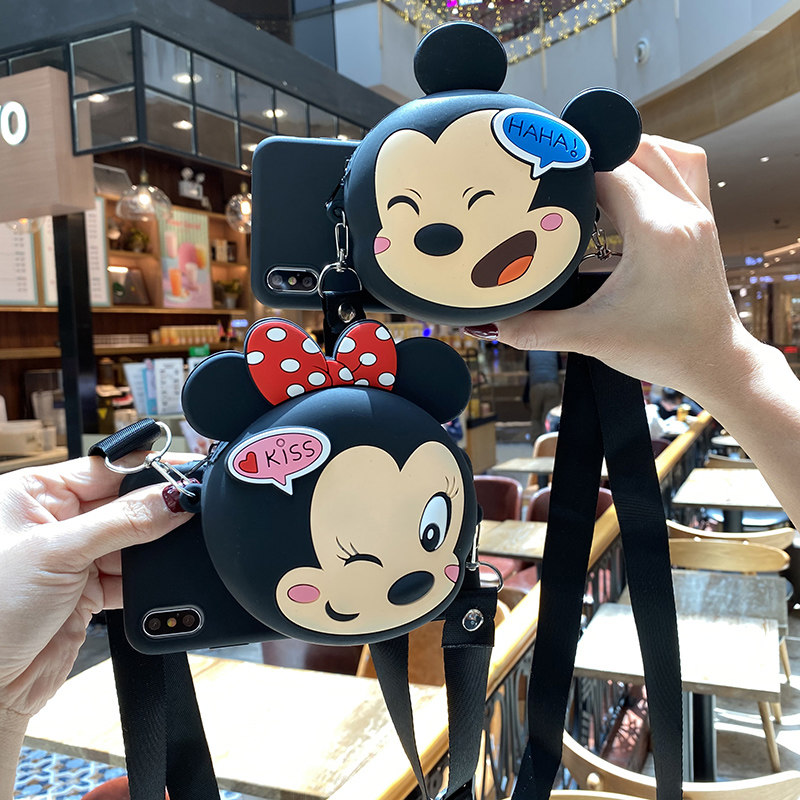 nova6 5g version-black shell Kiss Minnie wallet pure black cable-hanging rope nova6 5g version-black shell HAHA Mickey wallet pure black cable-down rope no