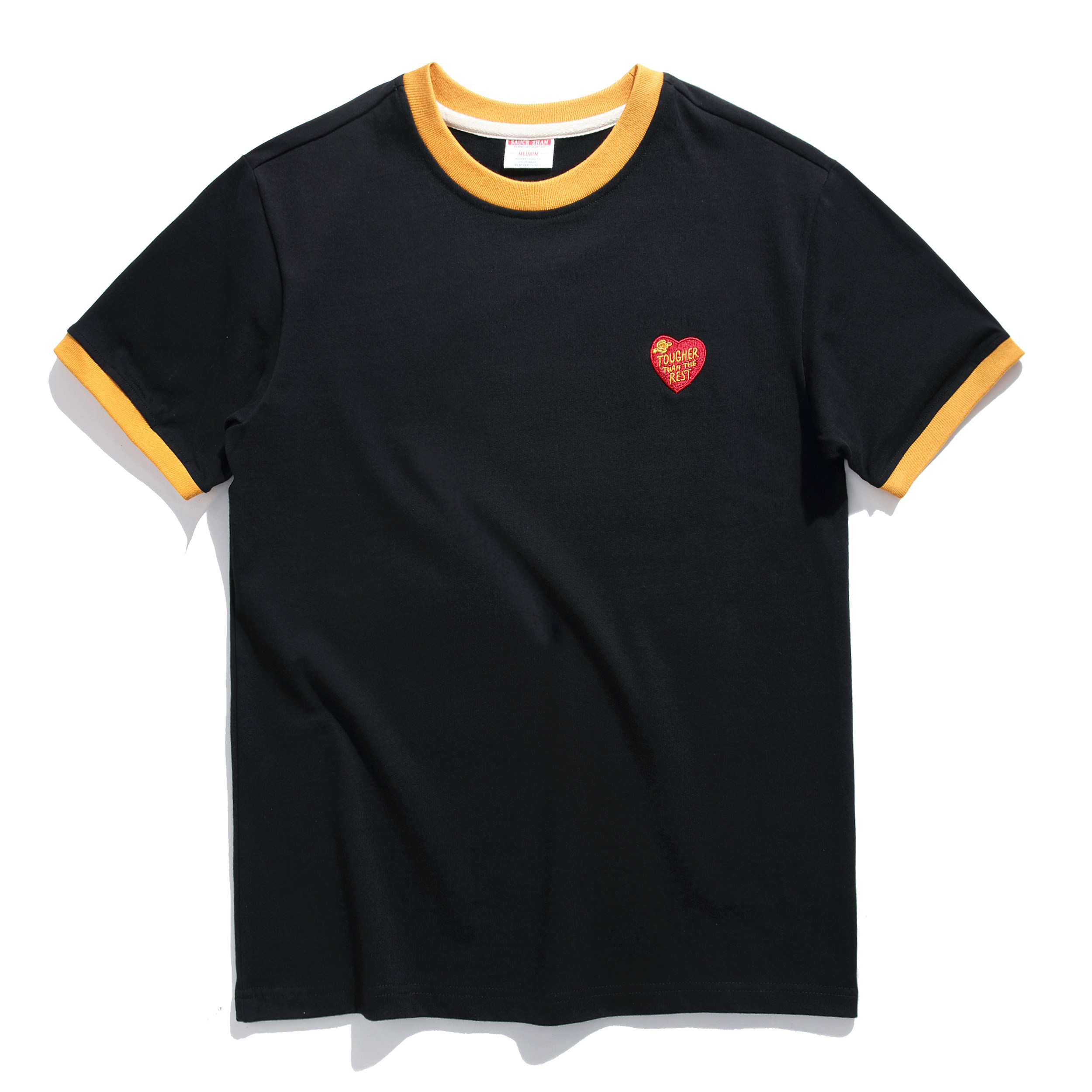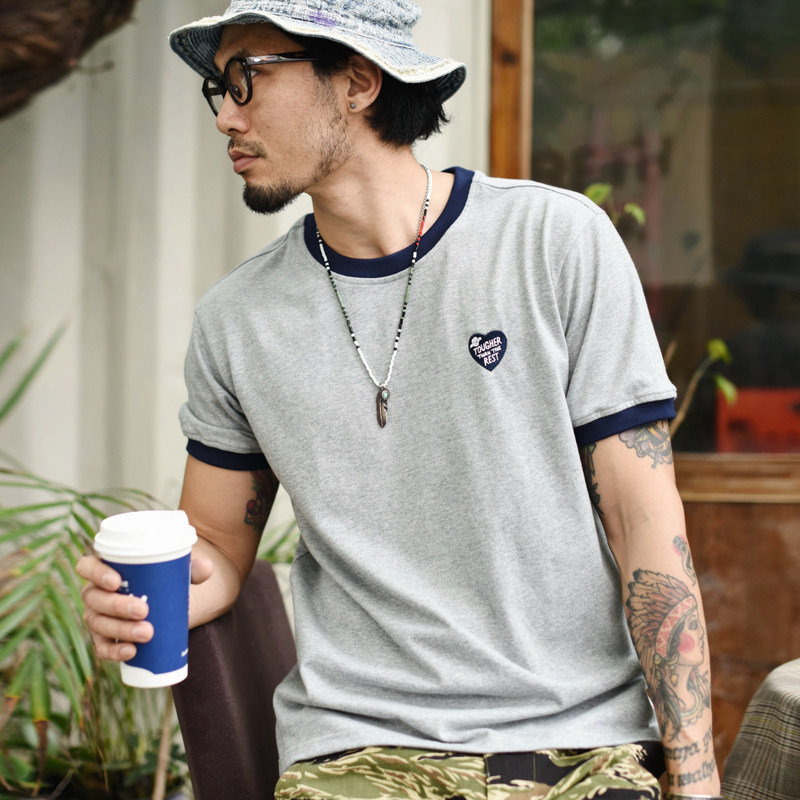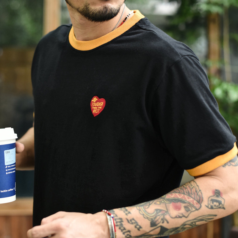 Dip sauce ringer embroidery T-shirt Short sleeve T-shirt men heavy cotton men's t-shirt short sleeve crew neck T-shirt