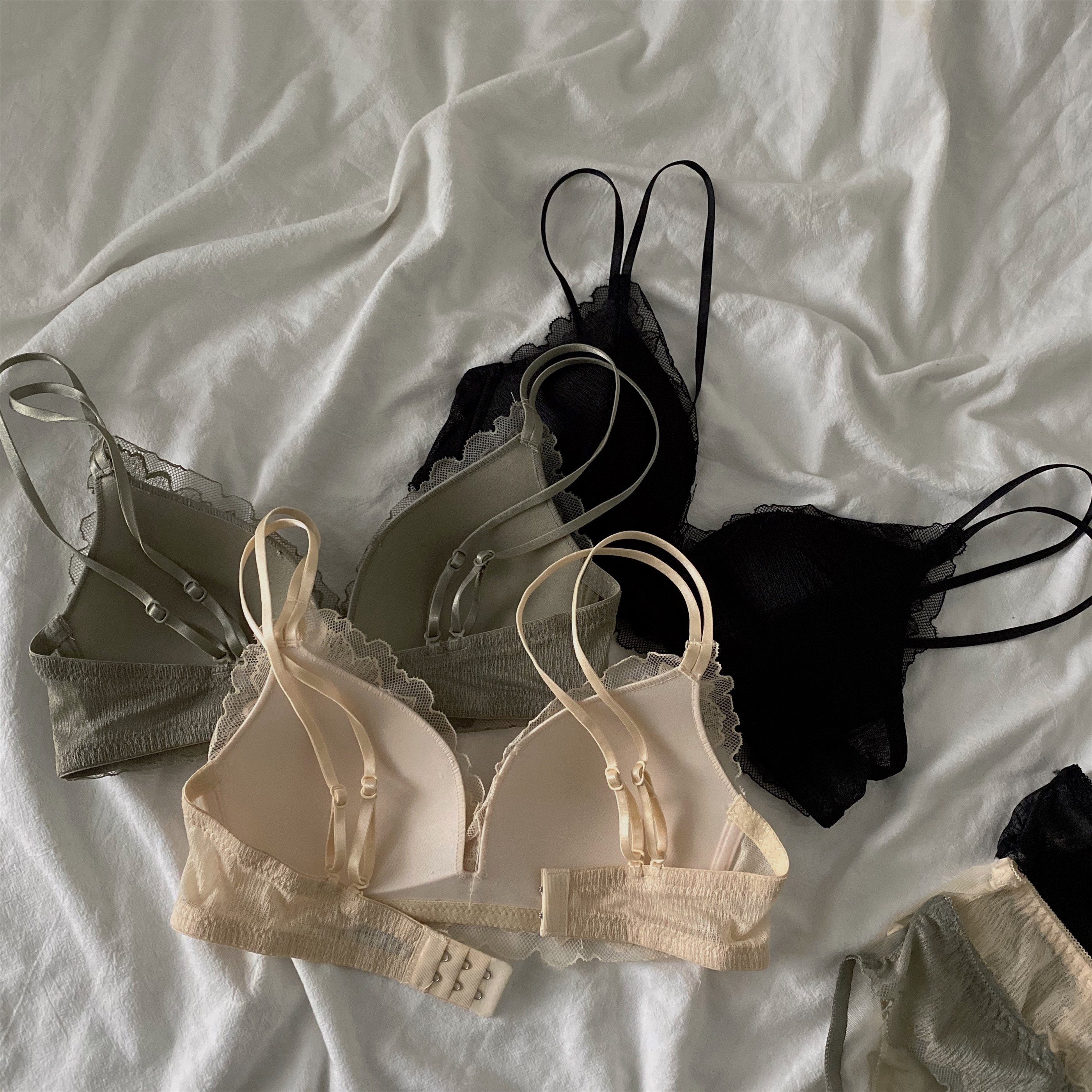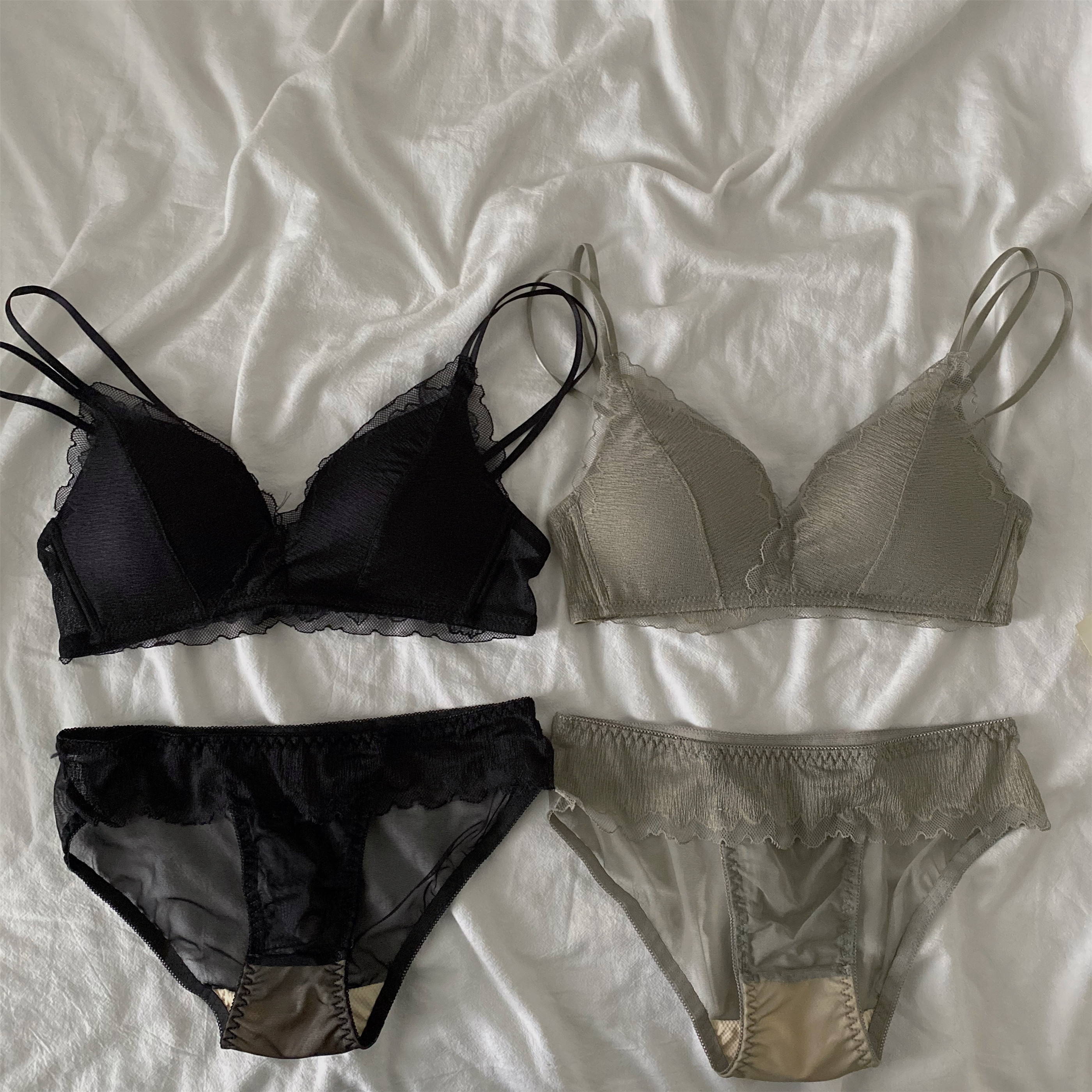 Summer Lace Sleeves Underwear Thin women No steel ring Women small breasts Breast Poly style pants bra black underpants suit