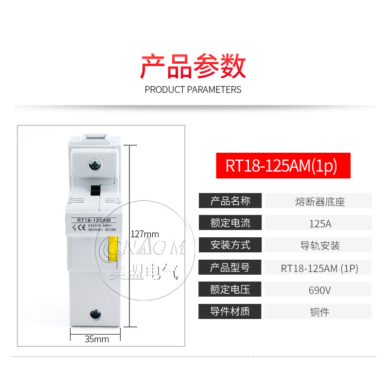 RT18-125AM fuse 125A krail type low pressure fuse base 22 * 58 R017 1P2P3P4P
