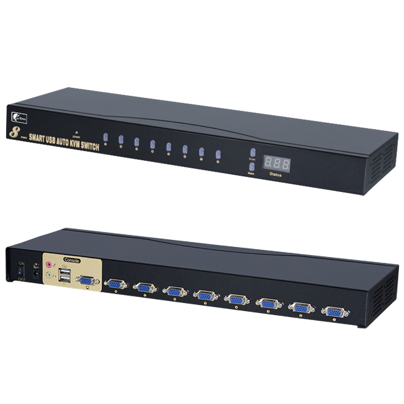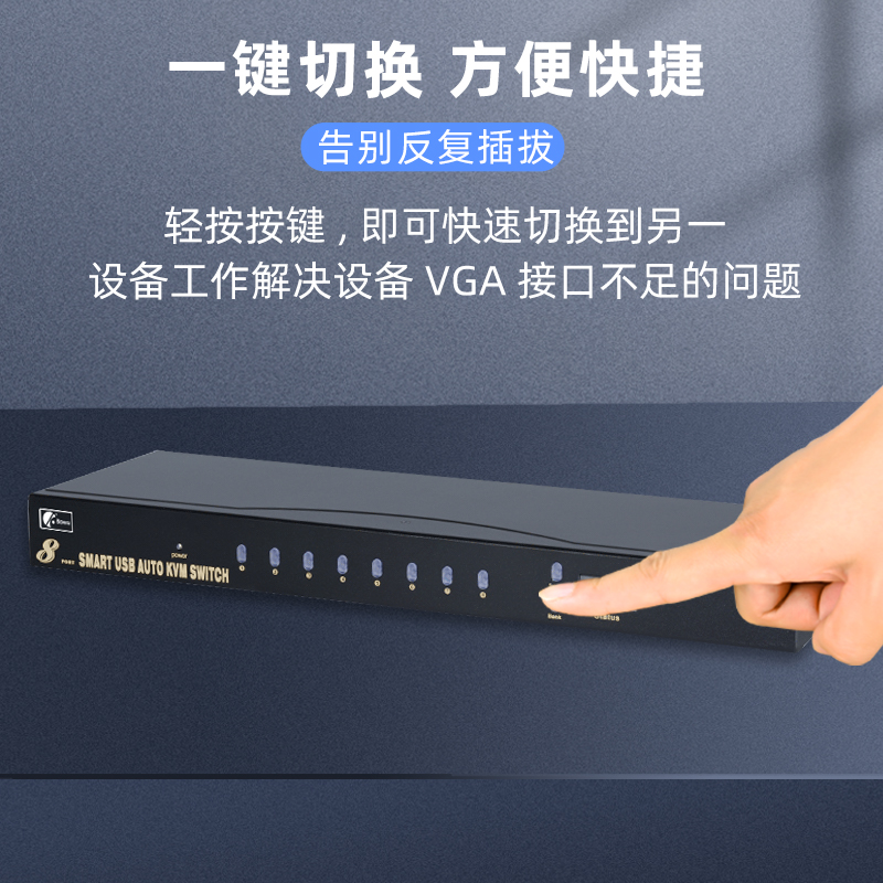BOWU KVM switcher 8 mouth vga eight-in-one multi-pen electric monitor Shared rat key display 8 in 1 out usb multi-interface extension cord audio-video synchronous hot key switching