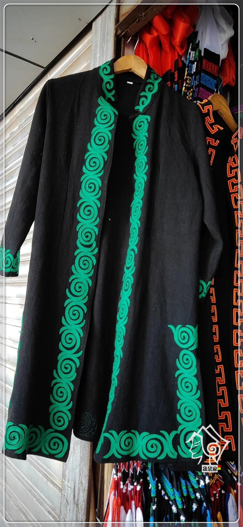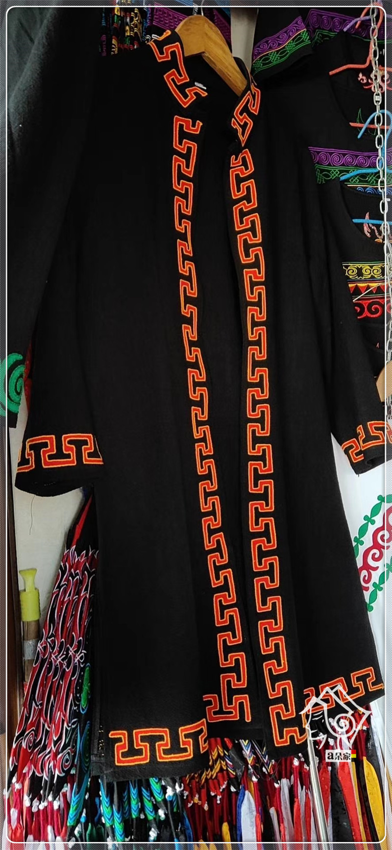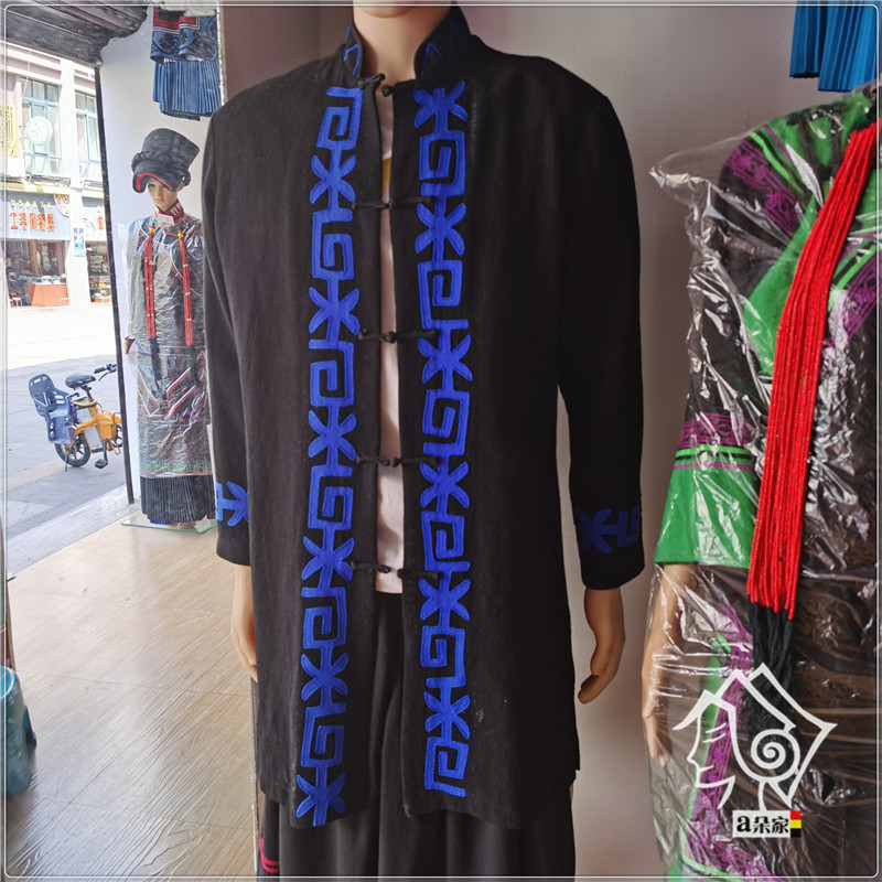 Liangshan Xichang Yi Nationality Clothing Men's and Women's Clothing Cotton and Linen Hand-embroidered Flower Long Custom Windbreaker Coat Outerwear