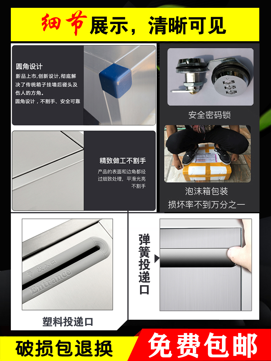 (Password lock mailbox) outdoor stainless steel oversized opinion box free of punching small hanging wall with lock opinion box complaint suggestion box sweeping black elimination evil report box petition report box