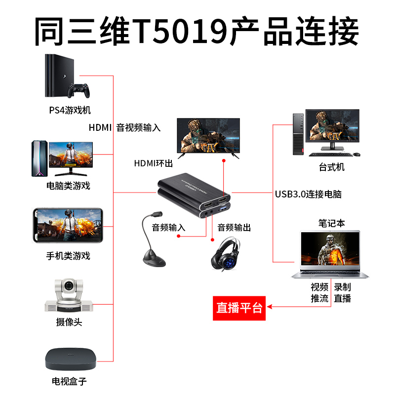 Co-three-dimensional T5019 high-definition HDMI film collection card NS Xbox game live image recording box