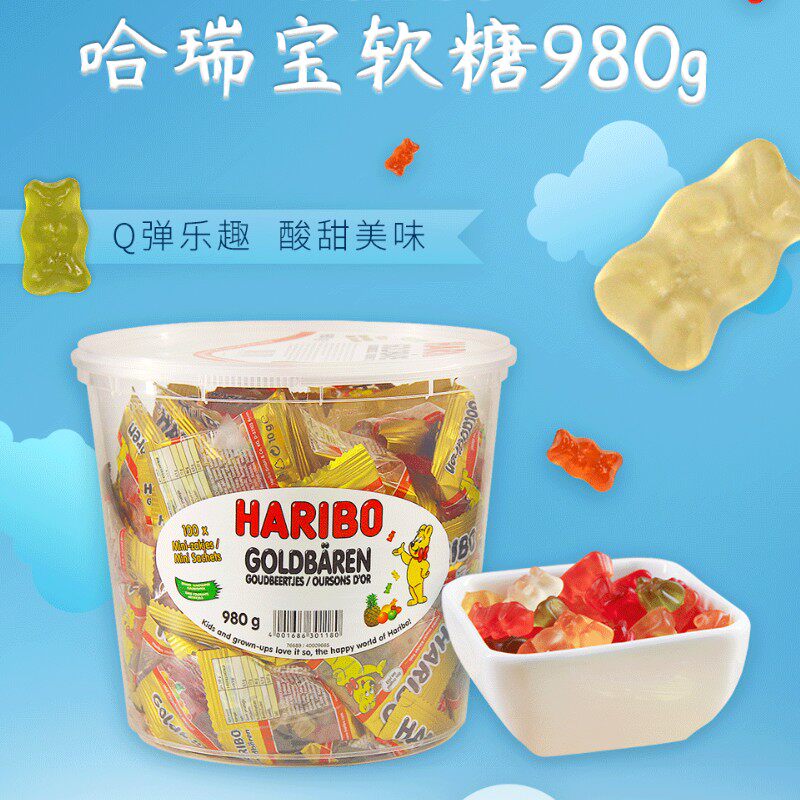 New German HARIBO Haribo Golden Bear Bear Gummy flavor 980g QQ rubber gummy 100 packs