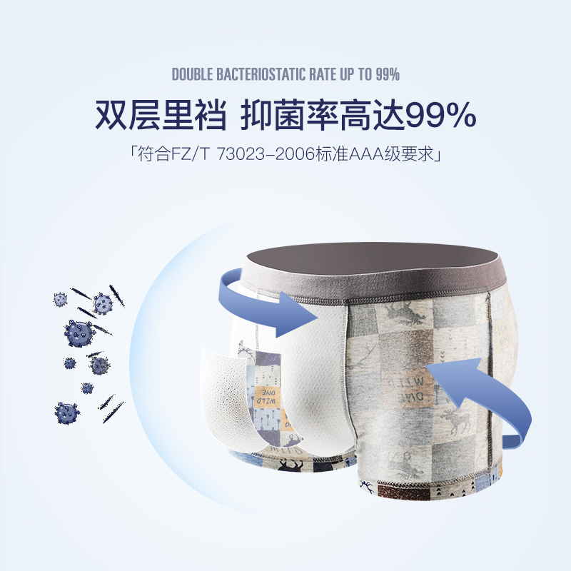 South Pole Men's underwear Men's pure cotton antibacterial crotch Four corner pants Summer breathable personality Chauffo printed safety pants mid-waist Four-corner pants
