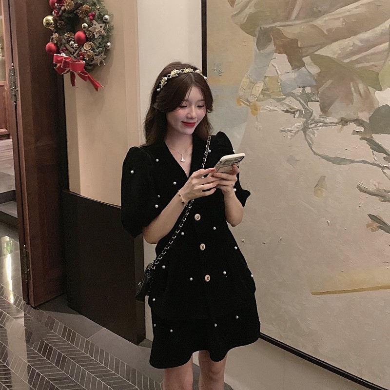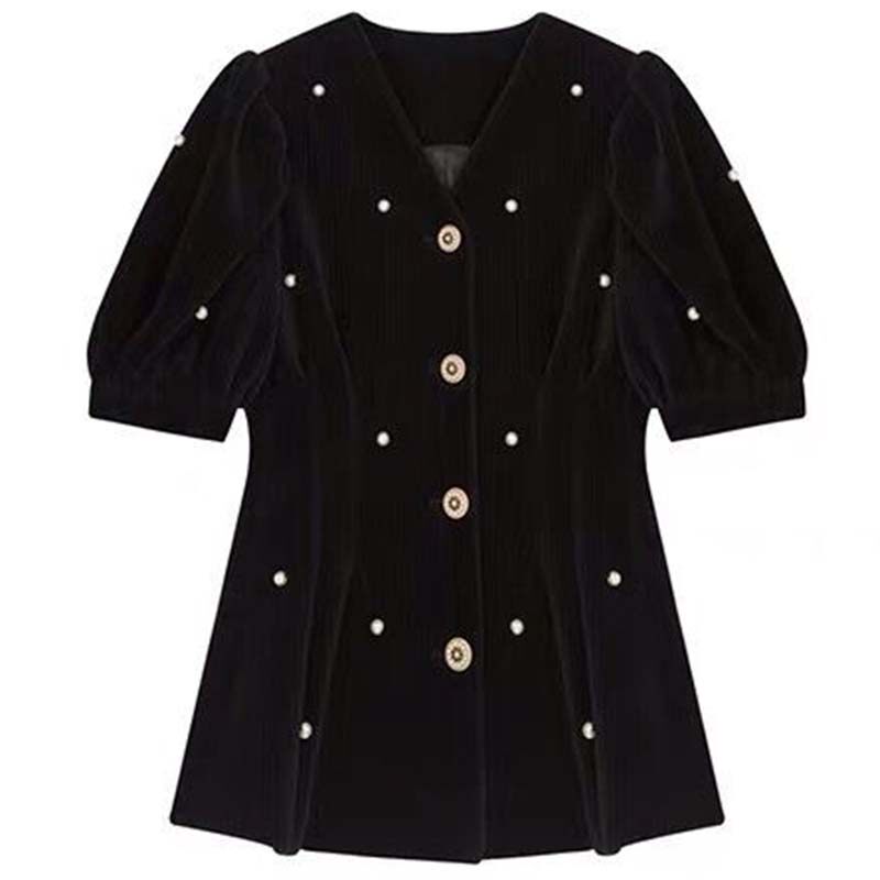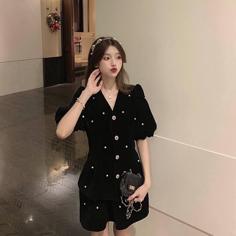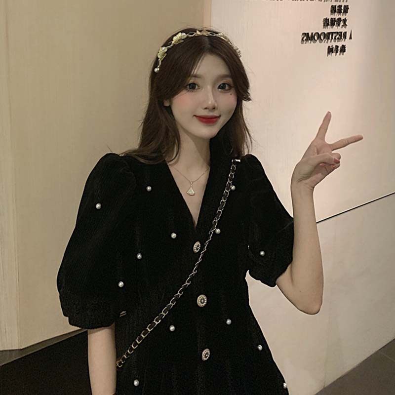 Summer women's dress 2022 New women's style Hepburn Vale V collar Black ocean dress Summer Advanced senses Design small crowdsourced