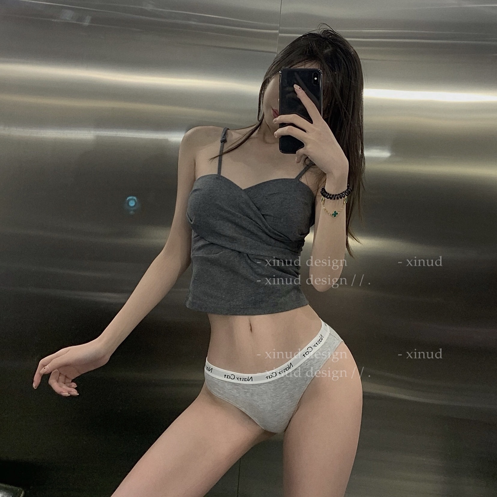 "LA" "Nasty Cat" independent design sexy and comfortable sports style solid color letter briefs women