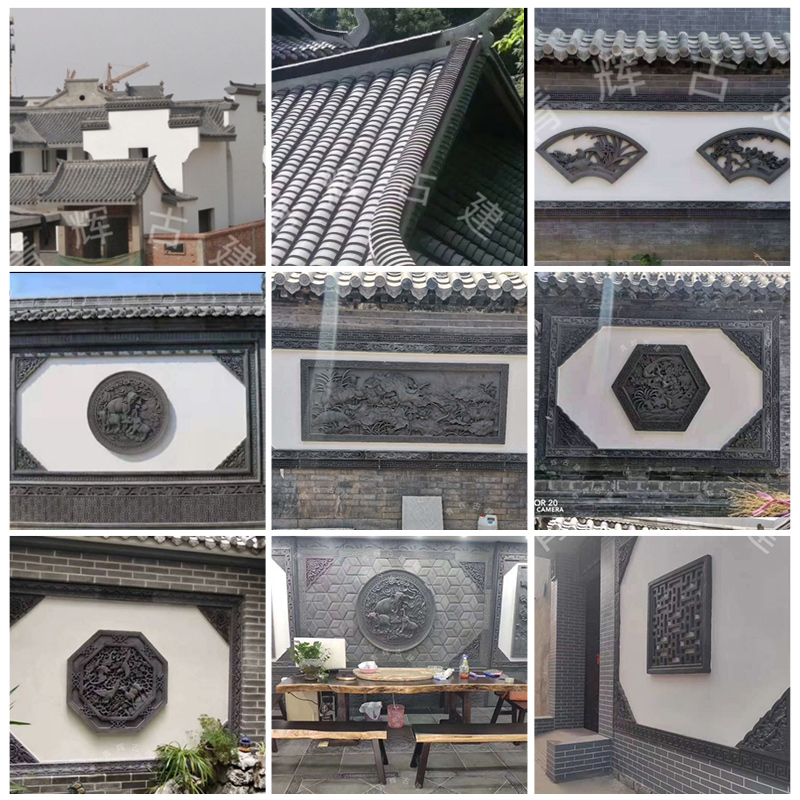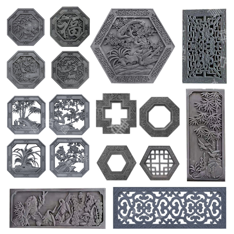 Antique cut-out window flower brick carving Chinese courtyard wall cement ancient building photo wall wall circular Fu character fan shaped strip
