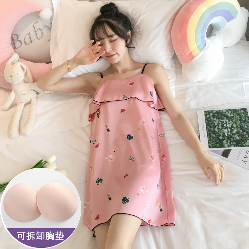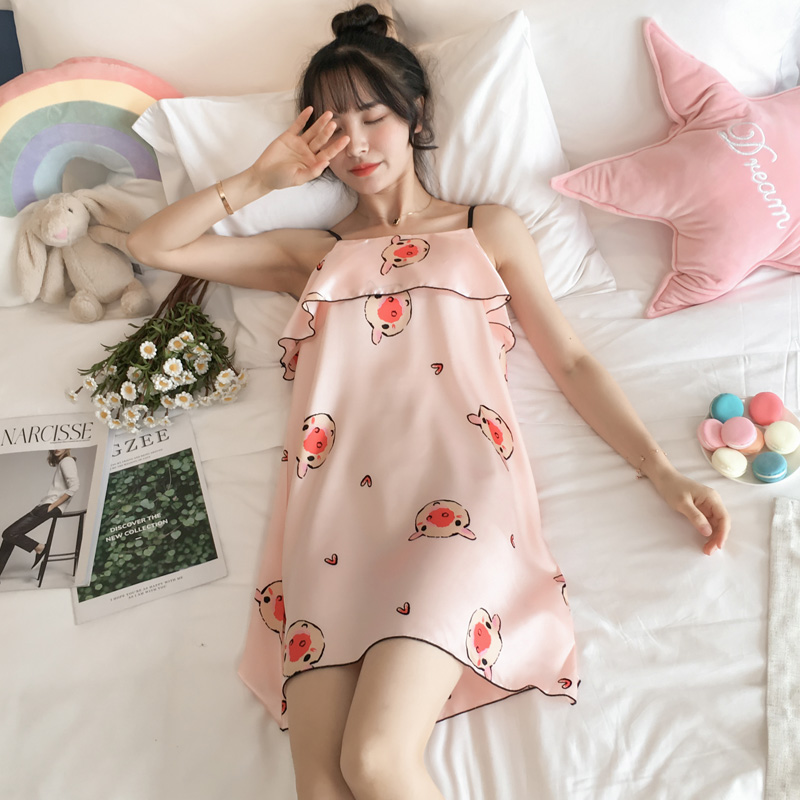 (half price clear cabin multiple optional) original medium RMB39 pyjamas women's summer ice silk thin and cute harness real silk