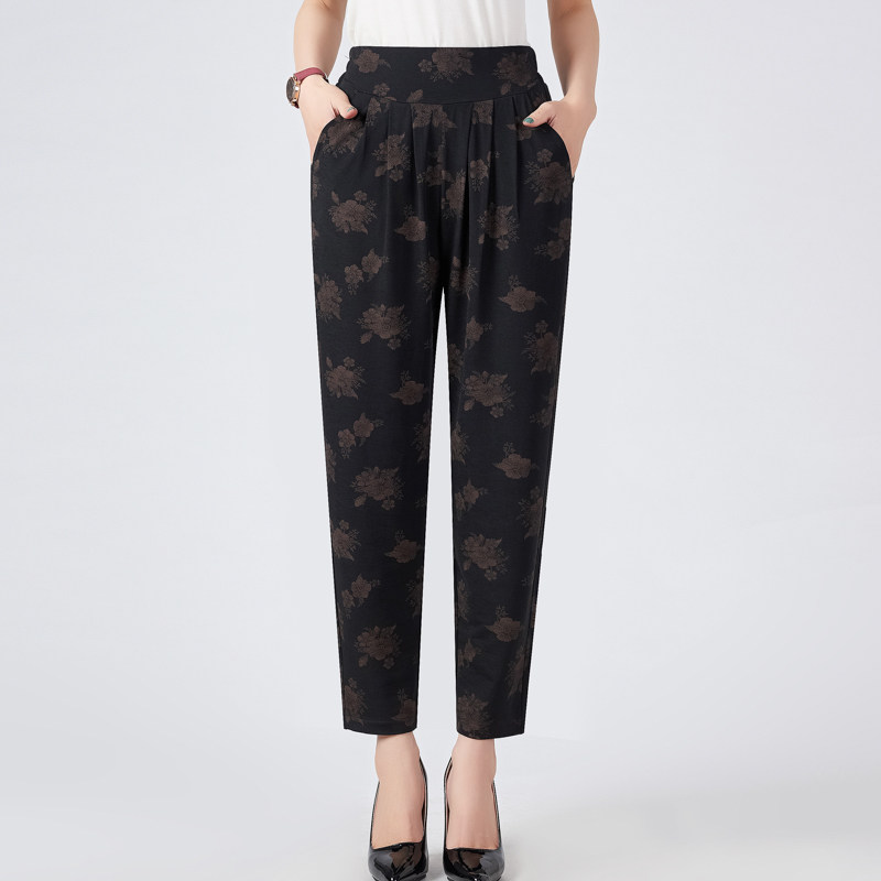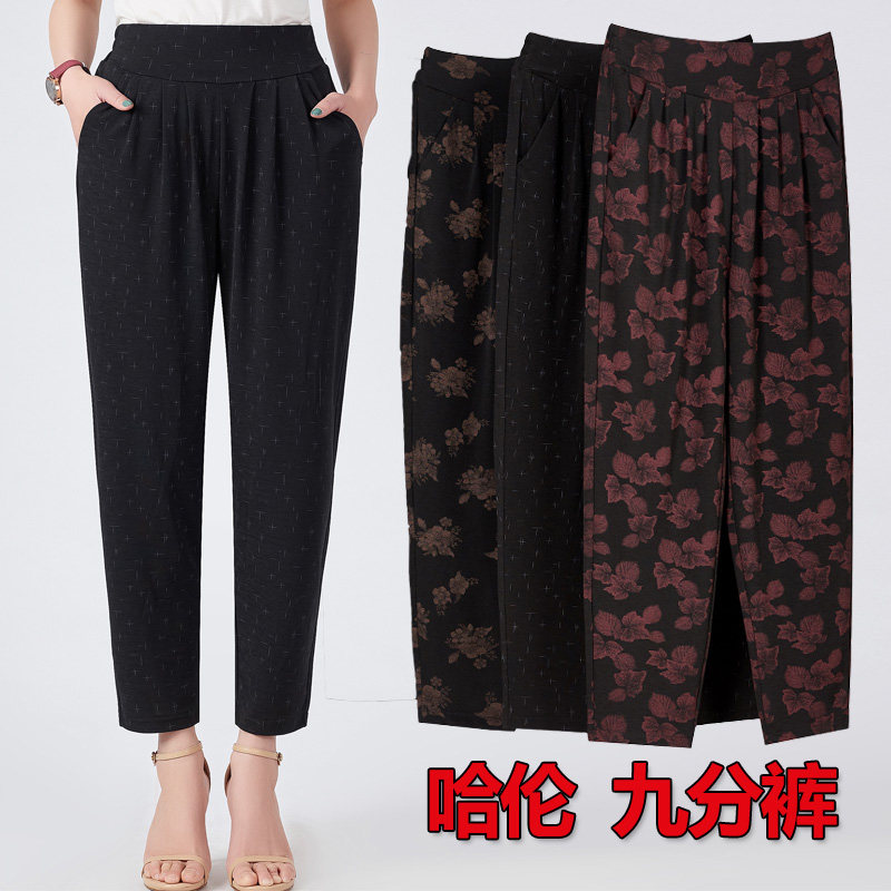 Middle-aged women's trousers summer thin nine points pants mother pants loose Harlem pants large print grandmother pants straight tube