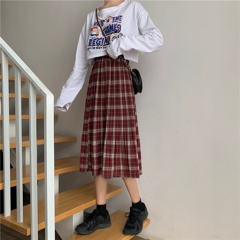 Small small lattice skirt 145 petite short 150cm high 155 spring and summer 2021 Joker skirt women xs