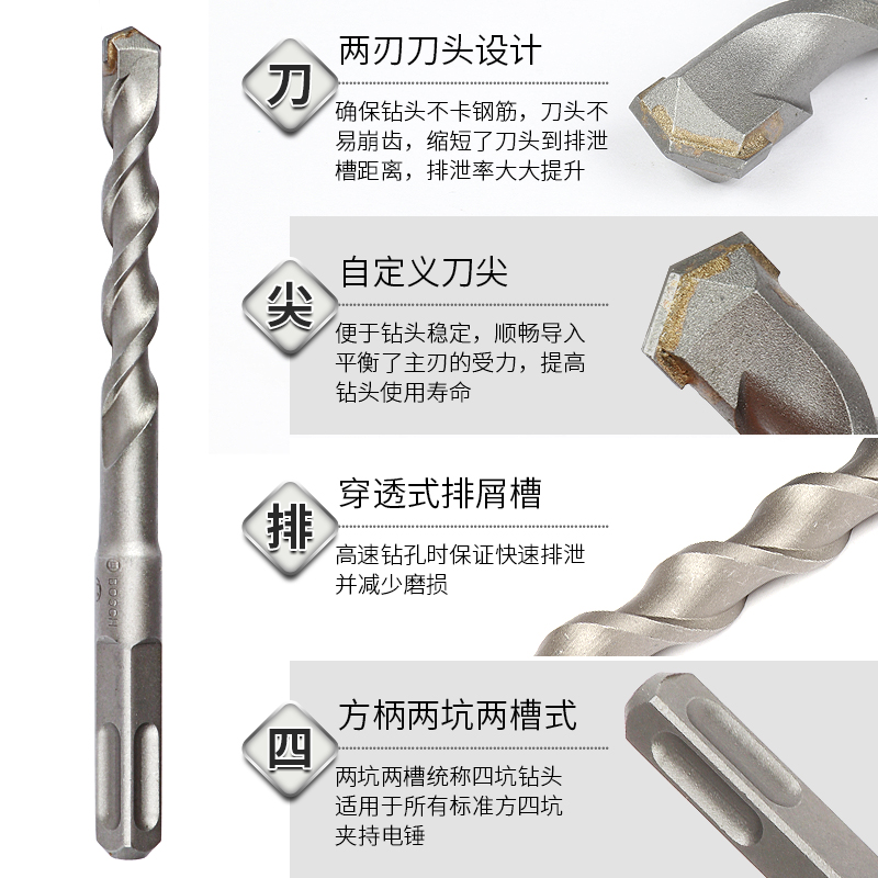 Bosch square handle electric hammer drill four pits 1 Series 5 Series 6 8 10 12 14 double-edged four-edged concrete through wall impact