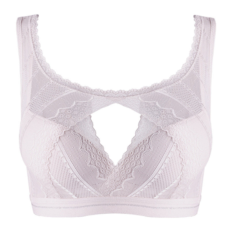 Breasted underwear female anti-walking light small breasts coalless without steel ring adjusting type bra vest type lace meme back bra thin
