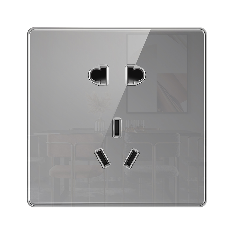 International Electrician Concealed 86 Type 5-hole socket Home silver grey glass acrylic Large-plate mirror Five-eye socket