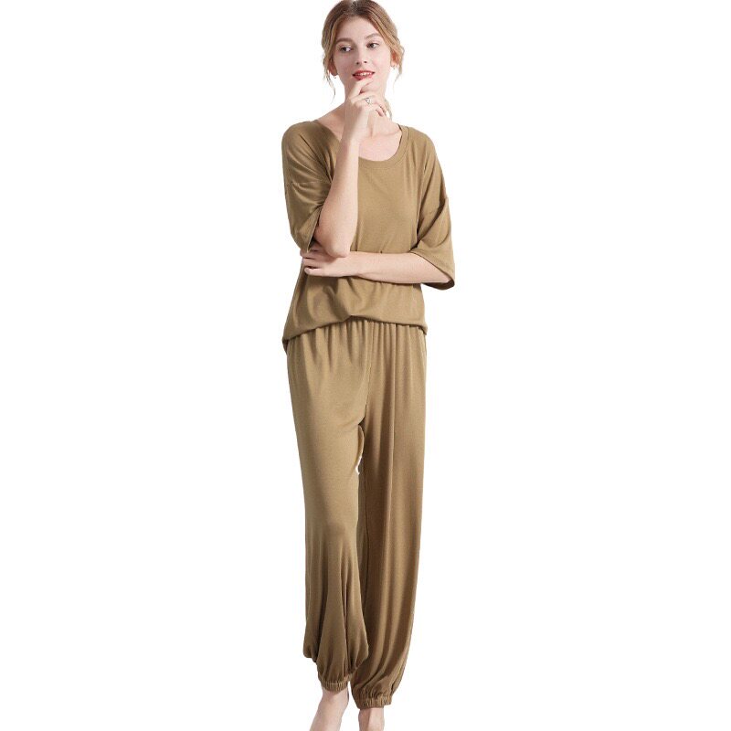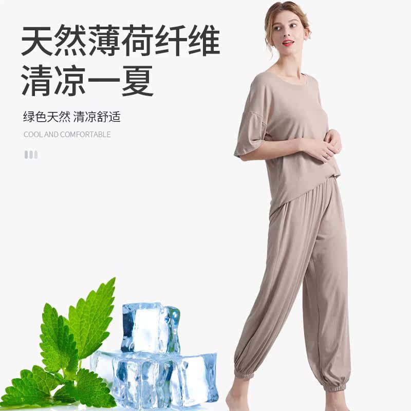 Broken Code Clearance Homewear Women Casual Thin Pajamas Set Loose Super Stretch Short Sleeve T-Shirt Bloomers Cropped