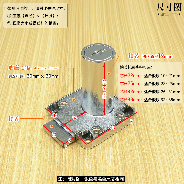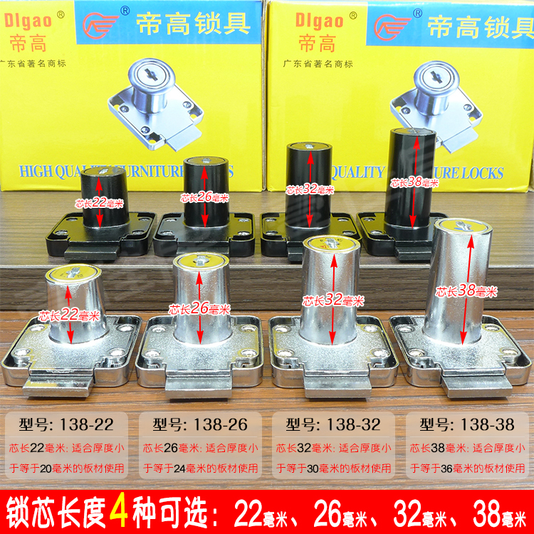 Digiao Empire High 38mm Home Self-Mounted Cabinet Door Cabinet Lock Drawer Lock Desk Black Universal Lengthened Lock Core