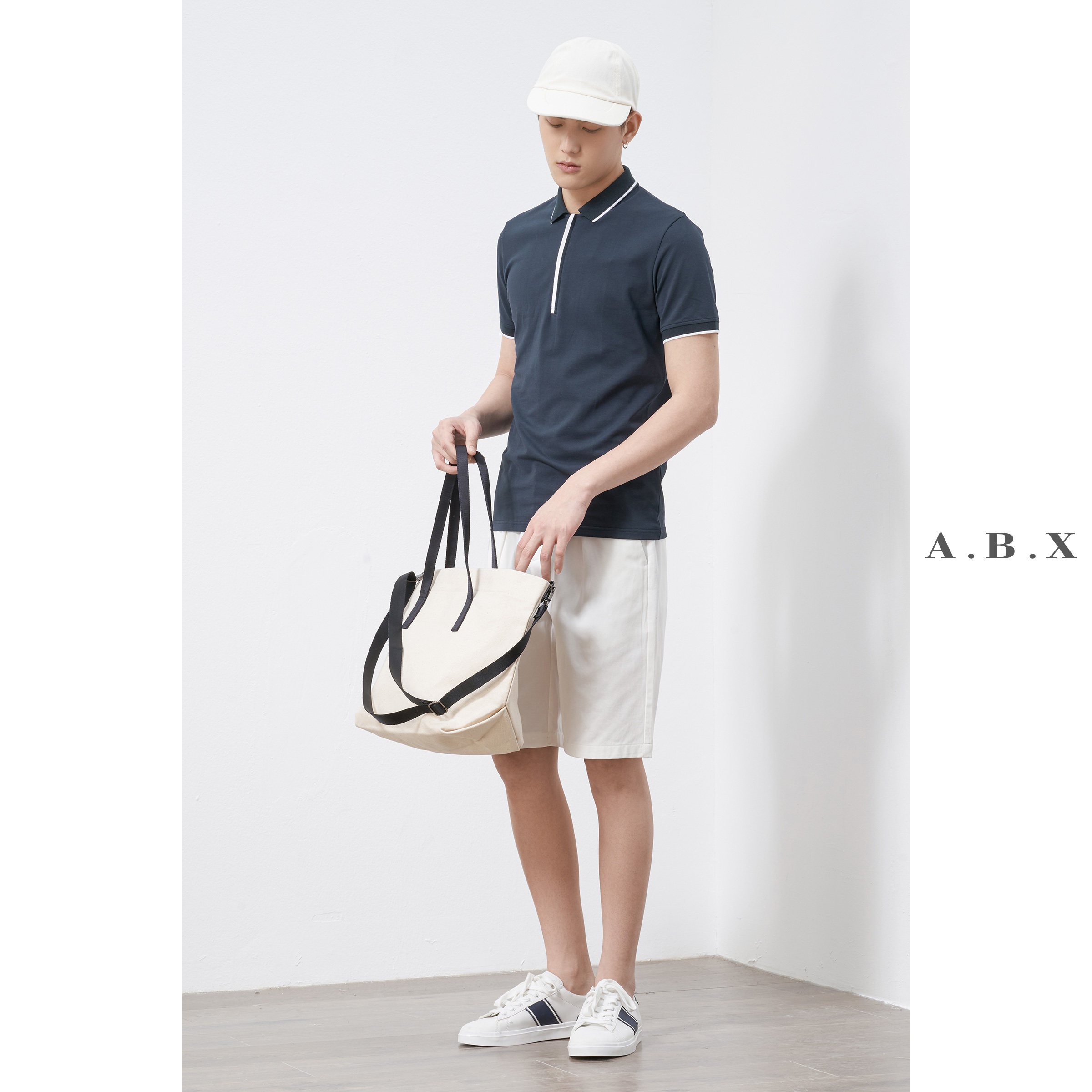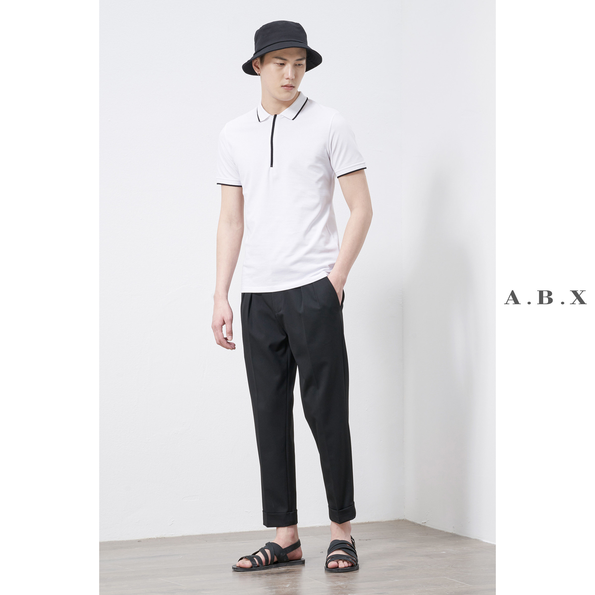 abx summer thin mercerized cotton lapel Polo shirt men slim fashion brand men's casual short sleeves trend solid color T-shirt