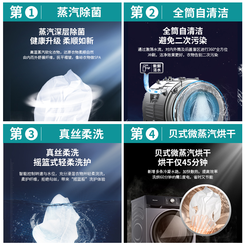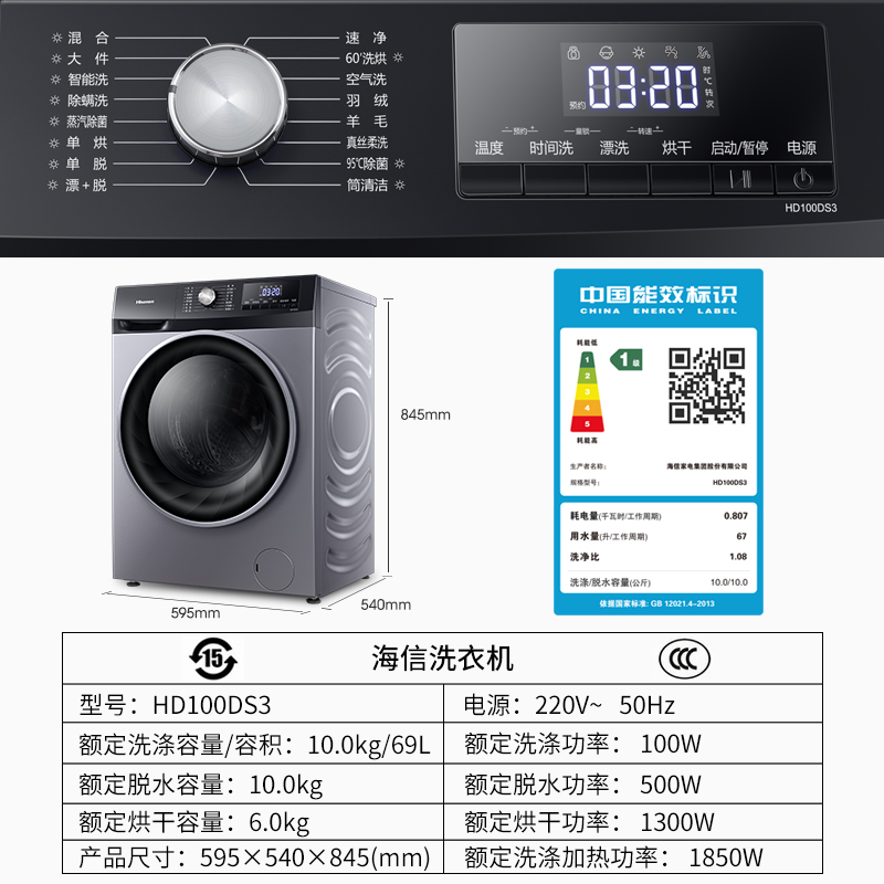 Hisense 10 kg kg frequency conversion drum washing machine automatic household sterilization washing and drying all-in-one machine HD100DS3