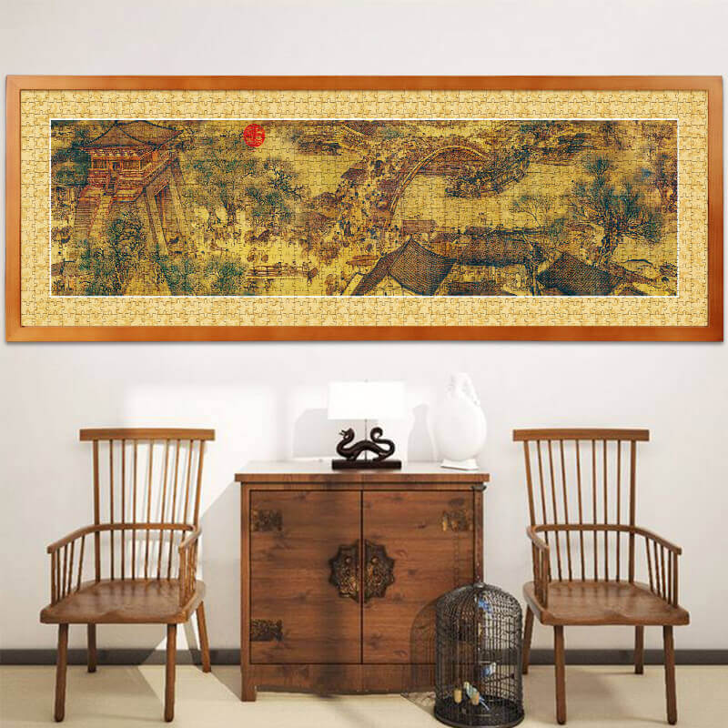 Chinese style Qingming Shanghe figure 1000 pieces with photo frame adult puzzle decompression large scenic painting creative gift