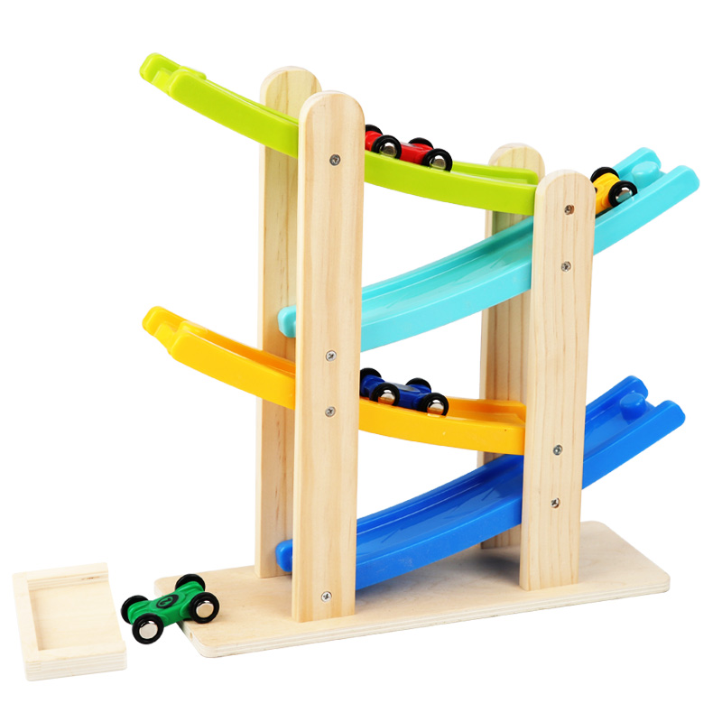 Children's puzzle track gliding car solid wood 1-2 years old boy and girl baby coasting toy gift