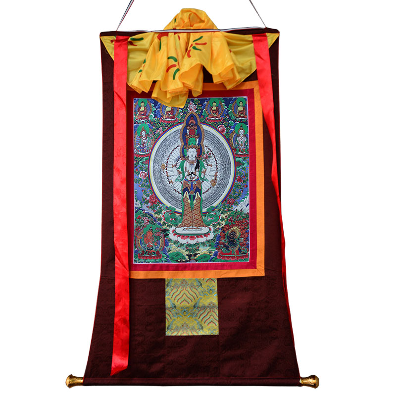 Thousand-hand Guanyin thangka portrait living room porch Nepal embroidery hand-painted Tibetan-style tantric Buddha statue hanging painting