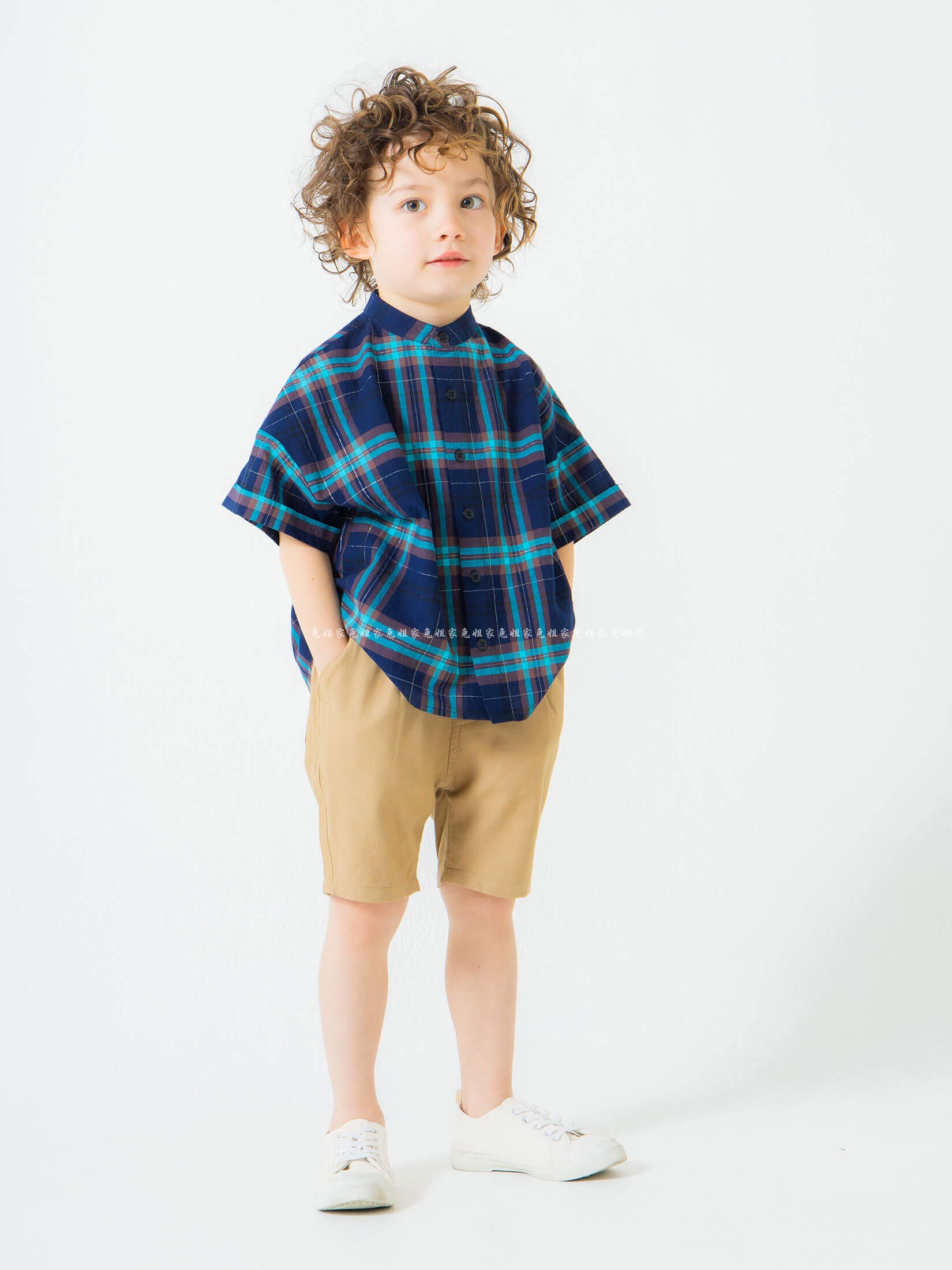 Japan childrens branshes Boys short sleeve shirt plaid British Japanese ultra-thin breathable sweat absorption summer models