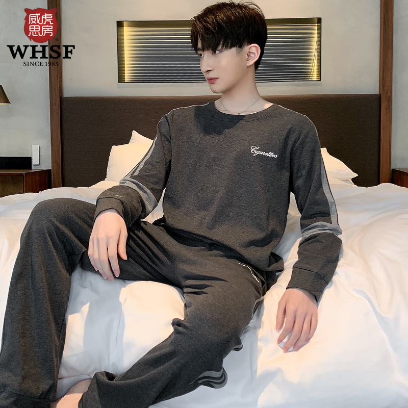 Pyjamas Men's spring autumn extras in sports stay-at-home long-sleeved teens High Tide Cotton Korean version Home Home Suits Suit