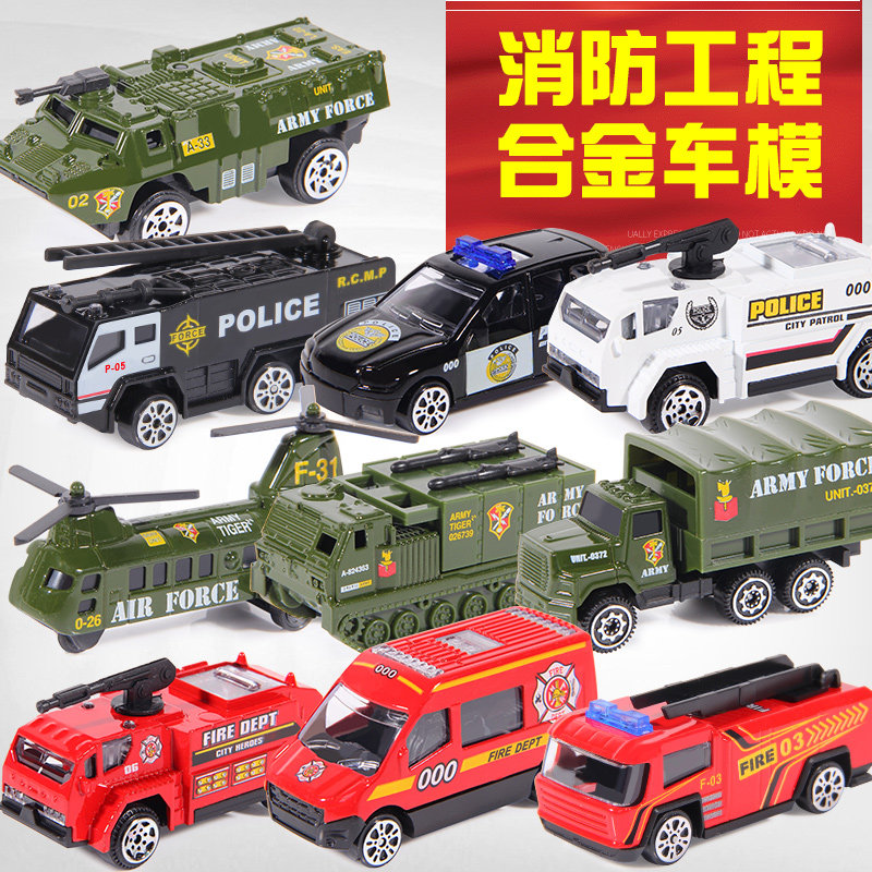 Alloy construction vehicle set Alloy Tank car set Alloy Fire truck set Alloy Police car set Alloy police car track set Alloy fire track set