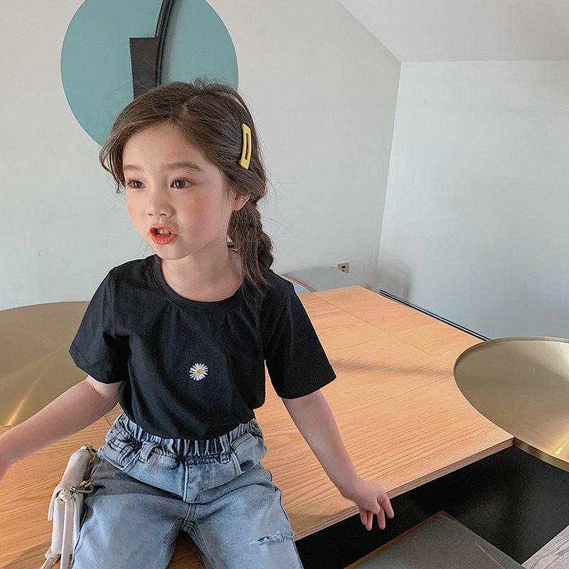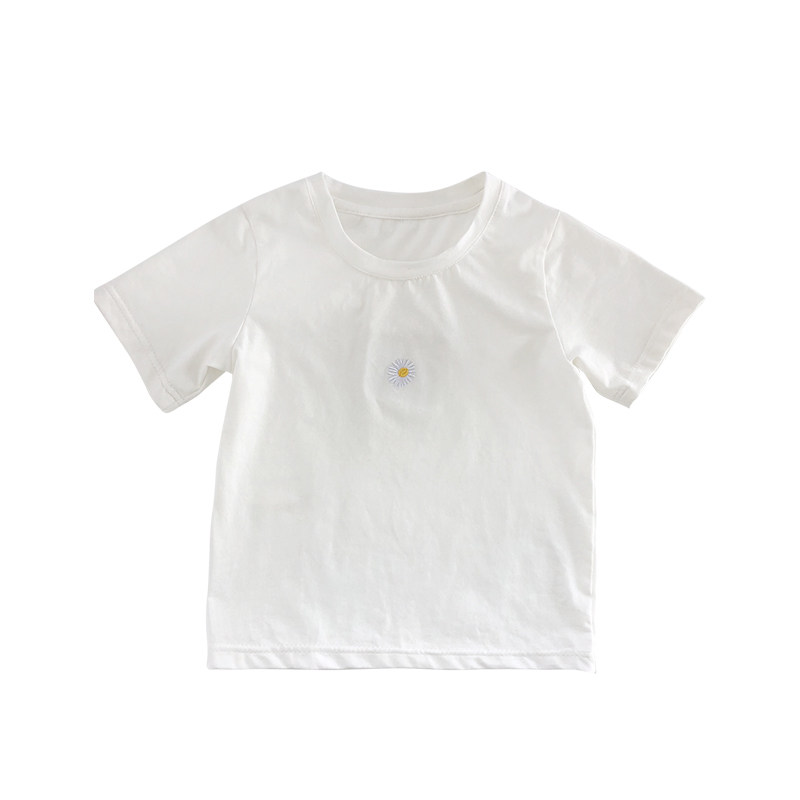 Salted egg small shrimp Korean summer dress girls short-sleeved daisy T-shirt baby Western style pure cotton thin bottoming shirt top