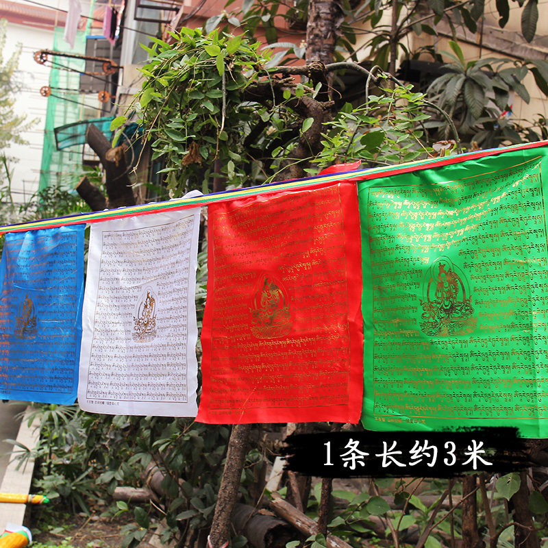 Green Tara heart mantra gold-lettered scriptures Tibetan five-color sutra flag Sutra flag wind horse flag dragon up to 10 sides 3 meters