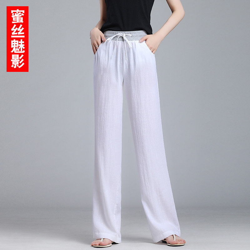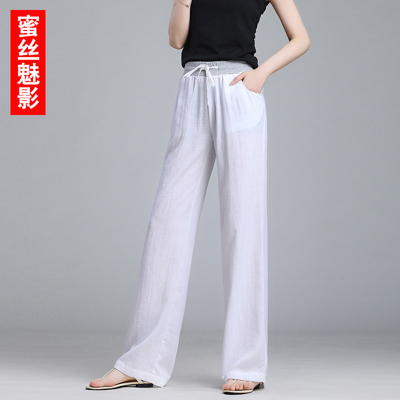 Cotton Linen Wide Pants Woman Summer Thin loose casual white straight drum pants 2022 New pituitary linen pants
