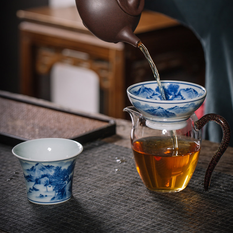 The Lord Kilns Jingde Town Tea House Tea Kiln Fired Green Flower Ceramic Filter Tea Leak Suit Kung Fu Tea Landscape Rework
