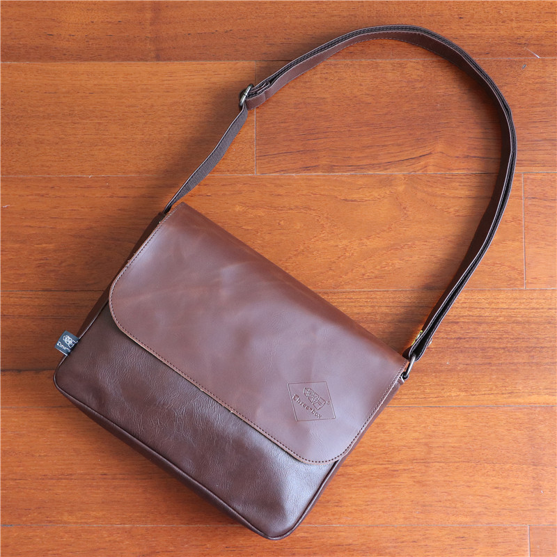 threebox new male package retro postman bag casual twill bag woman single shoulder bag PU leather shoulder bag student school bag