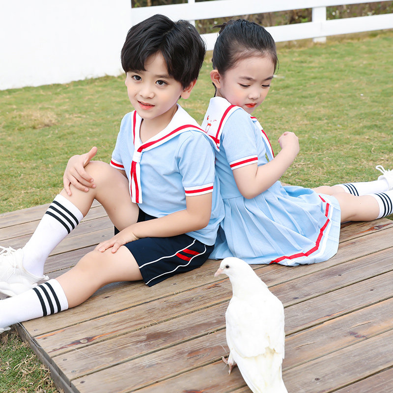 Kindergarten uniform summer dress children's class uniform English teacher short-sleeved cotton navy wind suit student school uniform summer dress