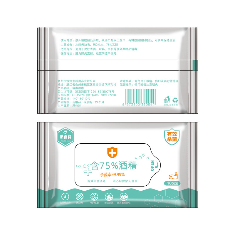 75 degrees Alcohol disinfection wet paper towels 100 pieces of sterilized packet disposable portable student children special carry-on