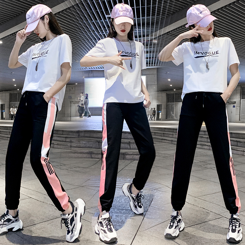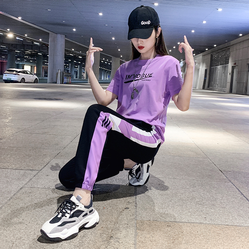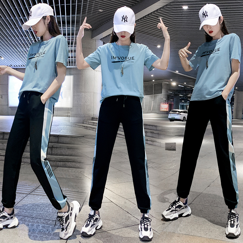 Cotton short-sleeved sports suit women's summer clothing 2023 new trendy brand fashion hip-hop student casual clothing two-piece set