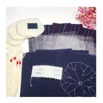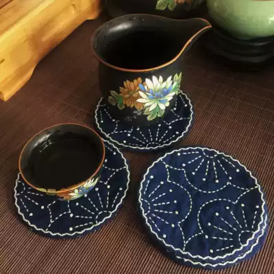 Lily handmade DIY Thorn embroidered coaster fabric tea ceremony old earth cloth blue material bag Dragon Boat Festival gift set