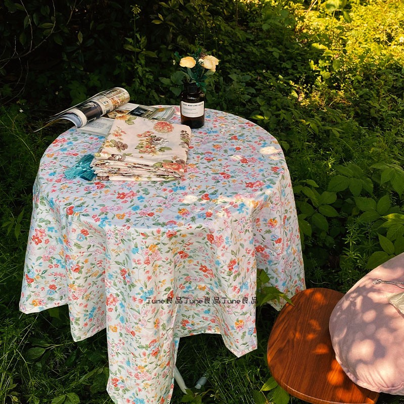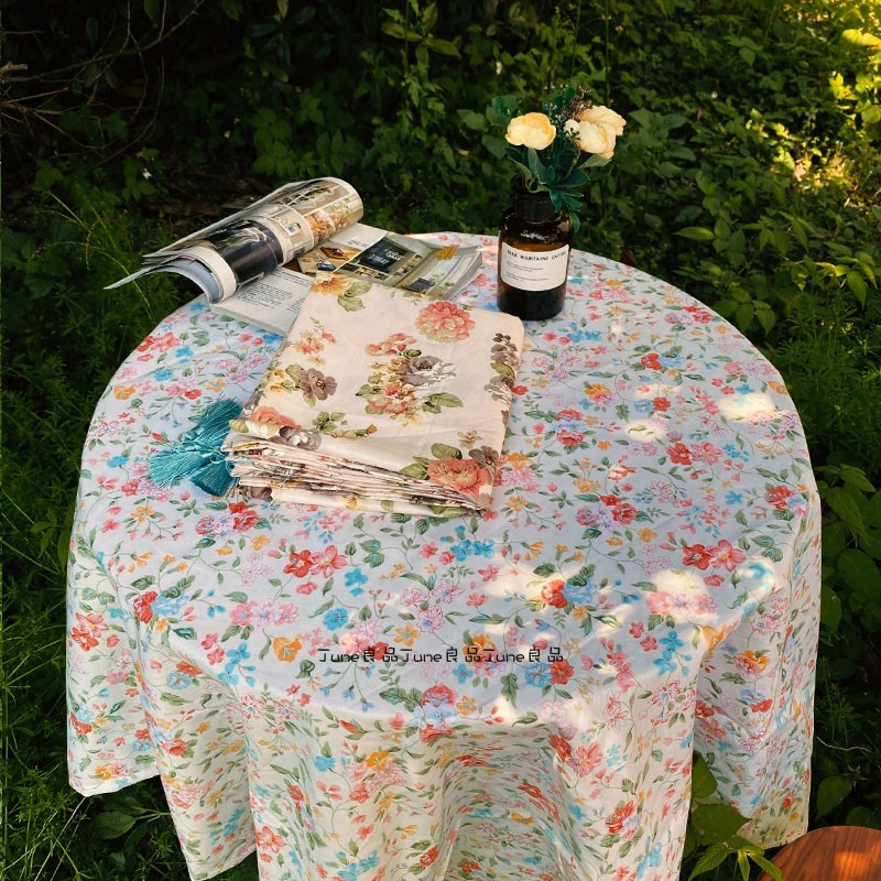 Fields Garden Broken Flowers Retro Table Burins Cream Rose Round Table Flow Sugeb Pure Cotton Art Table Tea Table Dining Mat