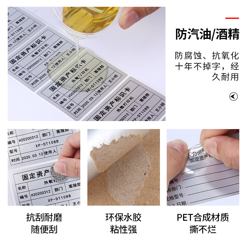 Fixed asset label sticker dumb silver synthetic paper self-adhesive strong sticky label paper waterproof and oil-proof handwritten custom PET