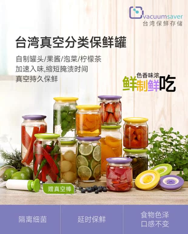 Vacuumsaver Taiwan vacuum food glass preservation box sealed can three-piece set 500ml 750ml round